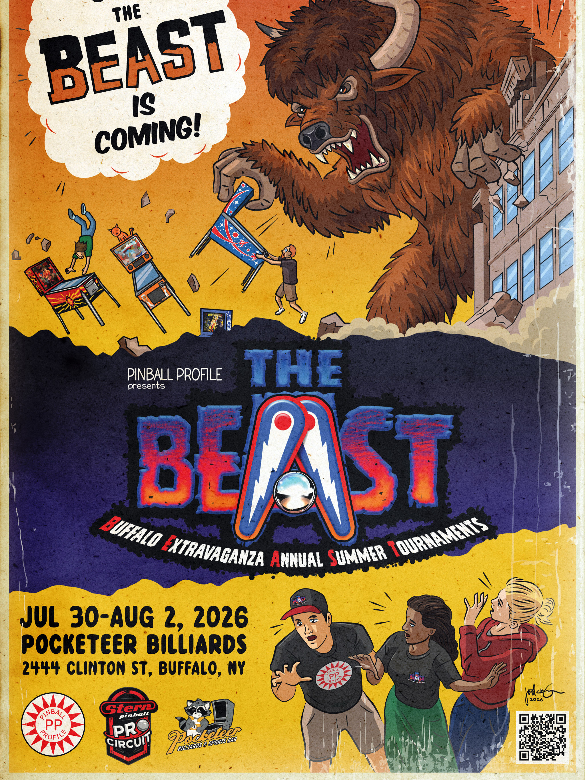 Add the Stern Pro Circuit event THE BEAST, July 30-Aug. 2/26 at Pocketeer Billiards in Buffalo, NY.