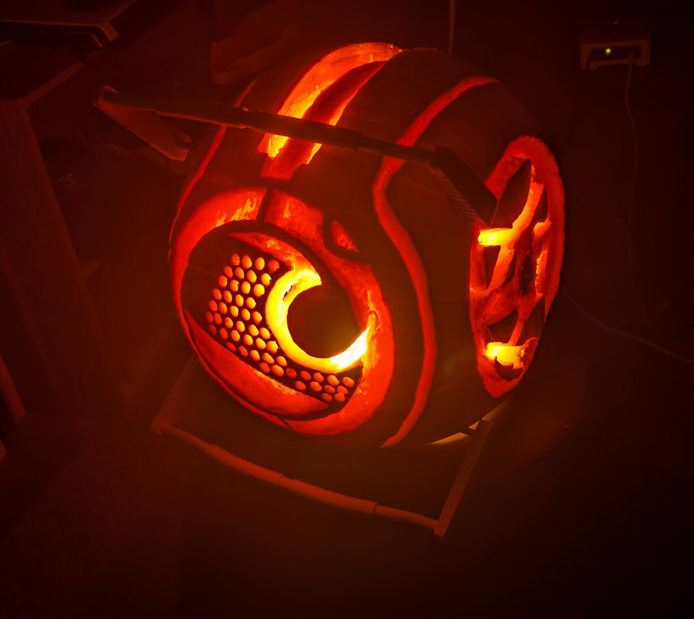 I started using power tools on pumpkins about 8-9 years ago, best thing ever. The kids love using the jigsaw and hole saw to create stuff. They also like using the sawzall to cut open the top.